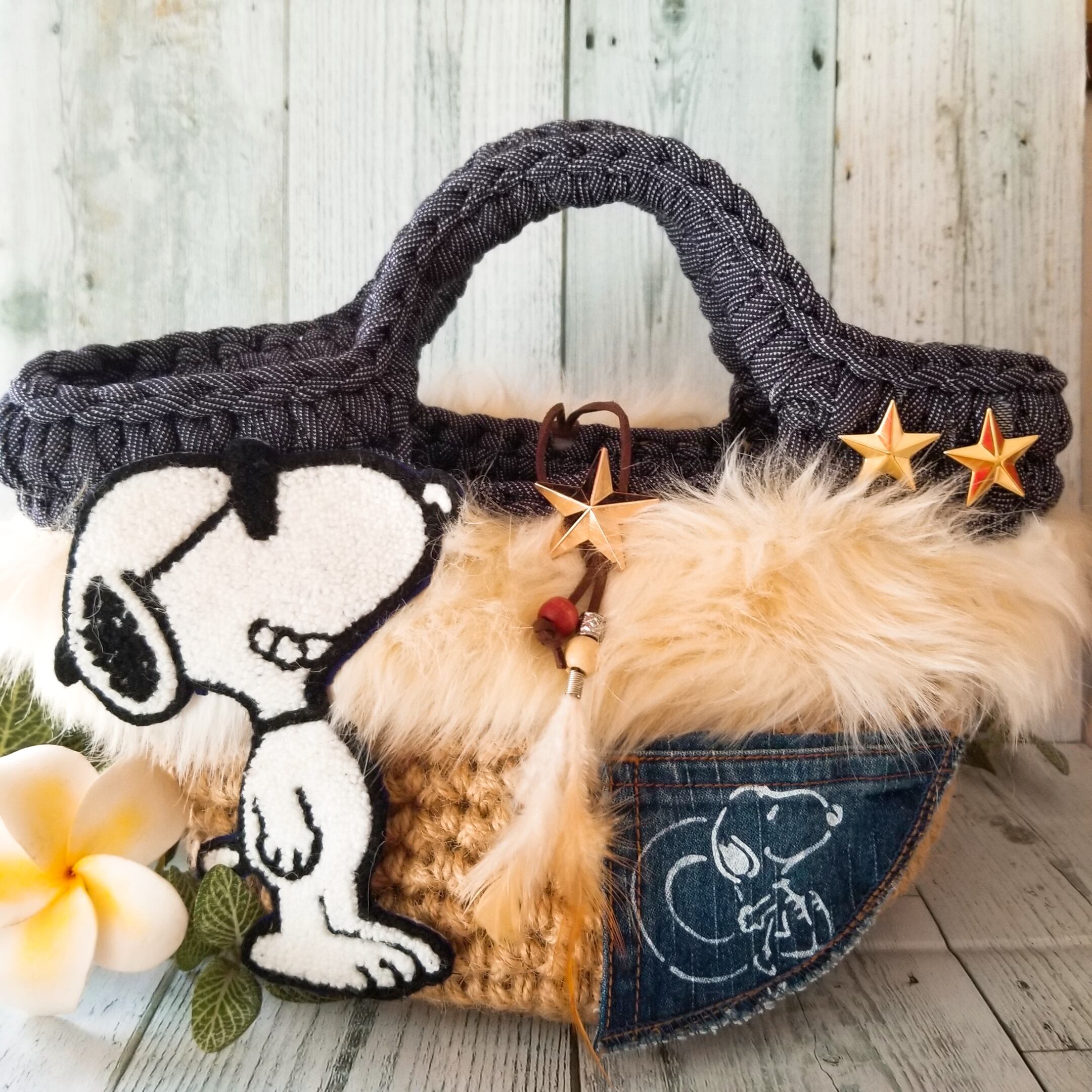 ズパゲッティファーバッグ リメイクスヌーピーワッペン×デニムポケット